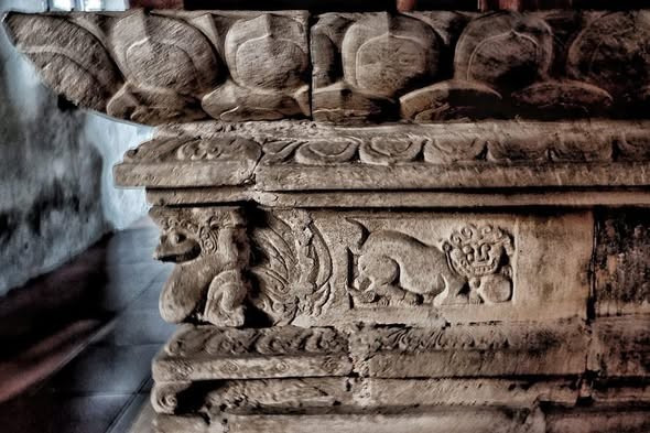 19. Bàn thờ Phật bằng đá chùa Đại Bi, niên đại thế kỷ 14 (niên hiệu Long Khánh 2 - 1374, thời Trần), hiện lưu giữ tại chùa Đại Bi, xã Dương Hòa, thành phố Hà Nội.