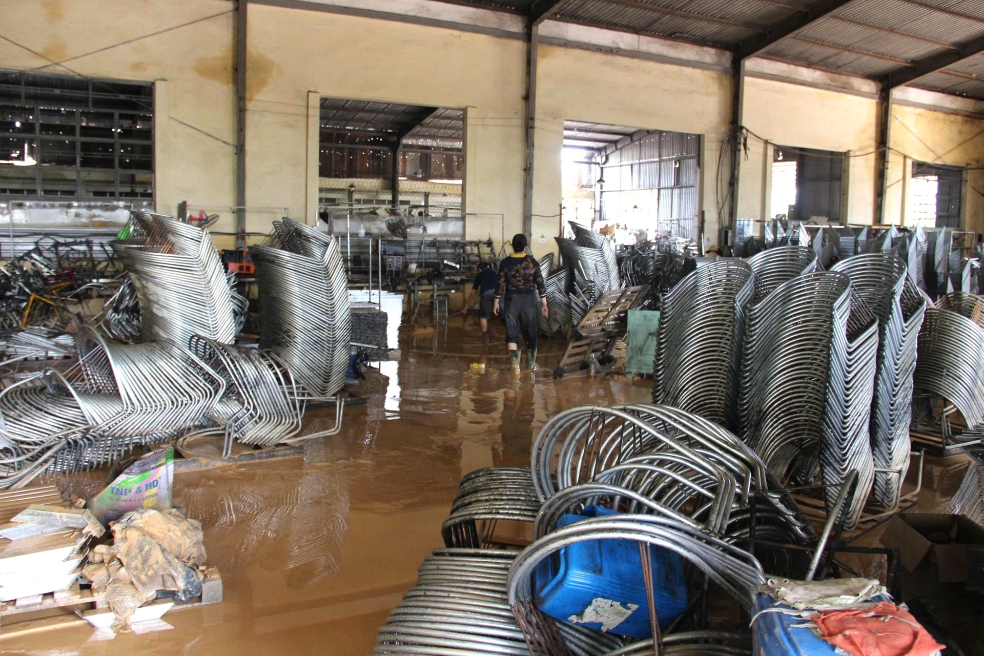 Nhà xưởng tan hoang sau lũ