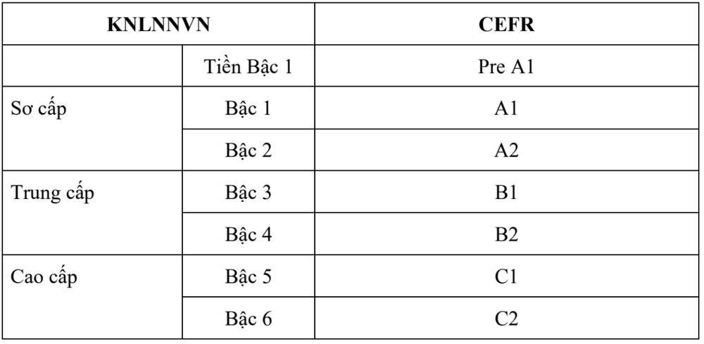 Dự thảo cũng bổ sung tiền Bậc 1 (Pre-A1), giúp bao quát toàn bộ phổ trình độ ngoại ngữ, từ giai đoạn làm quen đến mức độ sử dụng thành thạo, đáp ứng kịp thời nhu cầu và xu thế dạy học ngoại ngữ cho lứa tuổi nhỏ (mầm non, tiểu học) tại Việt Nam hiện nay.
