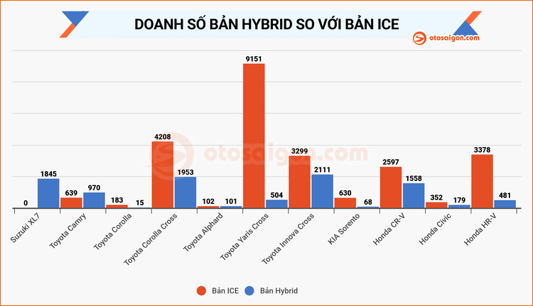 Các bản ICE vẫn có khả năng tiêu thụ tốt hơn so với hybrid do giá bán dễ tiếp cận và người dùng đã quen thuộc với loại động cơ này. Nhưng dung lượng xe hybrid của các dòng xe hybrid không hề nhỏ và có dấu hiệu tăng trưởng ổn định theo thời gian.