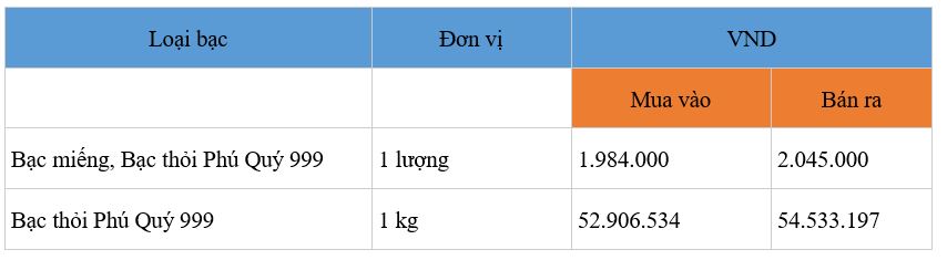 - Cập nhật bảng giá bạc mới nhất ngày 13/11 tại Tập đoàn Vàng bạc Đá quý Phú Quý: