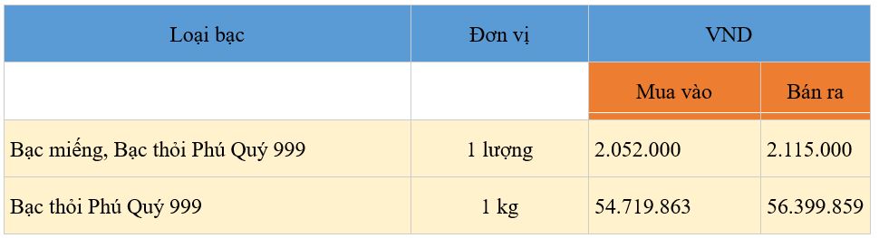 Cập nhật bảng giá bạc mới nhất ngày 14/11 tại Tập đoàn Vàng bạc Đá quý Phú Quý: