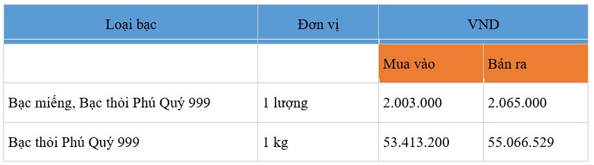 - Cập nhật bảng giá bạc hôm nay tại Tập đoàn Vàng bạc Đá quý Phú Quý:
