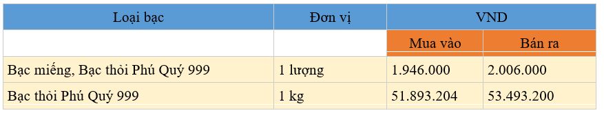 - Cập nhật bảng giá bạc mới nhất (21/11) tại Tập đoàn Vàng bạc Đá quý Phú Quý: