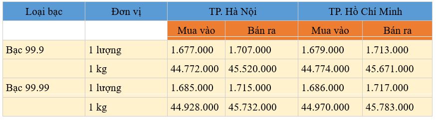 Giá bạc trong nước hôm nay