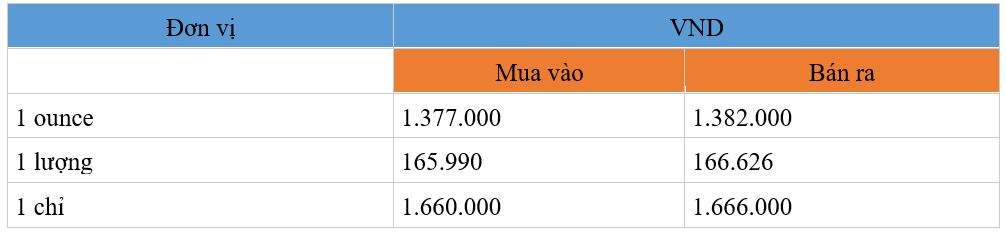 Quy đổi theo tỷ giá hiện hành, giá bạc thế giới tương đương khoảng 1.377.000 đồng/ounce (mua vào) và 1.382.000 đồng/ounce (bán ra).