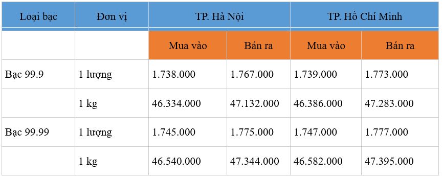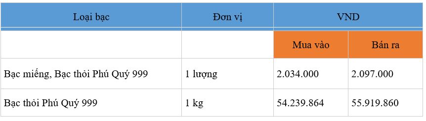- Cập nhật bảng giá bạc mới nhất hôm nay (28/11) tại Tập đoàn Vàng bạc Đá quý Phú Quý: