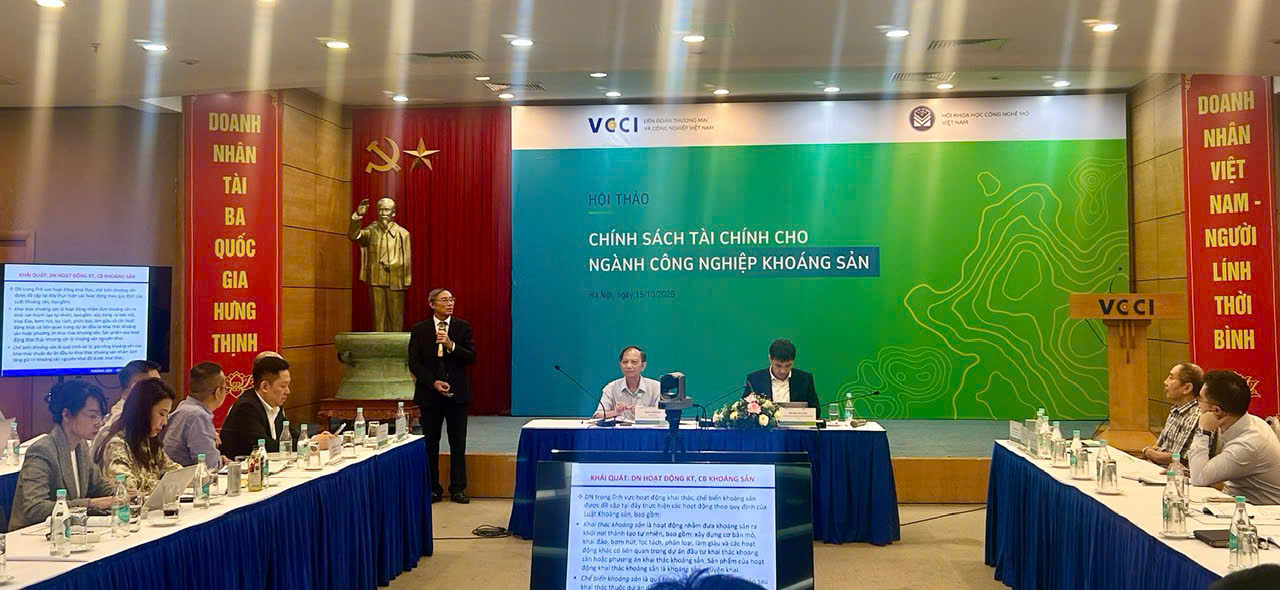 Ngày 15/10, tại Hà Nội, Liên đoàn Thương mại và Công nghiệp Việt Nam (VCCI) phối hợp với Hội Khoa học và Công nghệ Mỏ Việt Nam tổ chức Hội thảo “Chính sách tài chính cho ngành công nghiệp khoáng sản”, thu hút sự tham gia của đông đảo chuyên gia kinh tế, nhà quản lý và đại diện doanh nghiệp hoạt động trong lĩnh vực khai thác, chế biến khoáng sản.