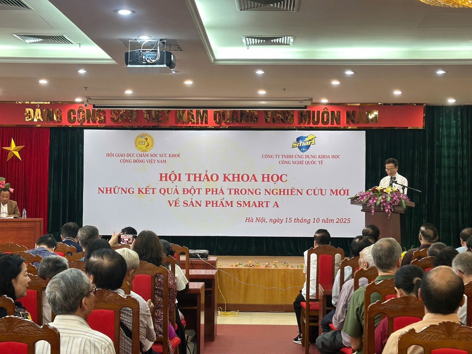 Sáng ngày 15/10/2025, tại Hà Nội, Hội Giáo dục Chăm sóc Sức khỏe Cộng đồng Việt Nam phối hợp với các viện nghiên cứu và doanh nghiệp trong lĩnh vực y tế tổ chức Hội thảo khoa học “Những kết quả đột phá trong nghiên cứu mới về sản phẩm Smart A”. Sự kiện thu hút sự tham dự của các chuyên gia, nhà khoa học đầu ngành, đại diện cơ quan quản lý và cộng đồng doanh nghiệp hoạt động trong lĩnh vực chăm sóc sức khỏe.