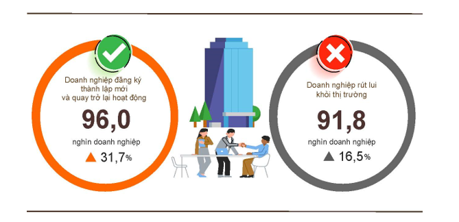 Tính chung trong quý 1 năm nay, tổng số doanh nghiệp thành lập mới và quay trở lại hoạt động đạt 96 nghìn doanh nghiệp, vượt lên trên số doanh nghiệp rút lui khỏi thị trường.