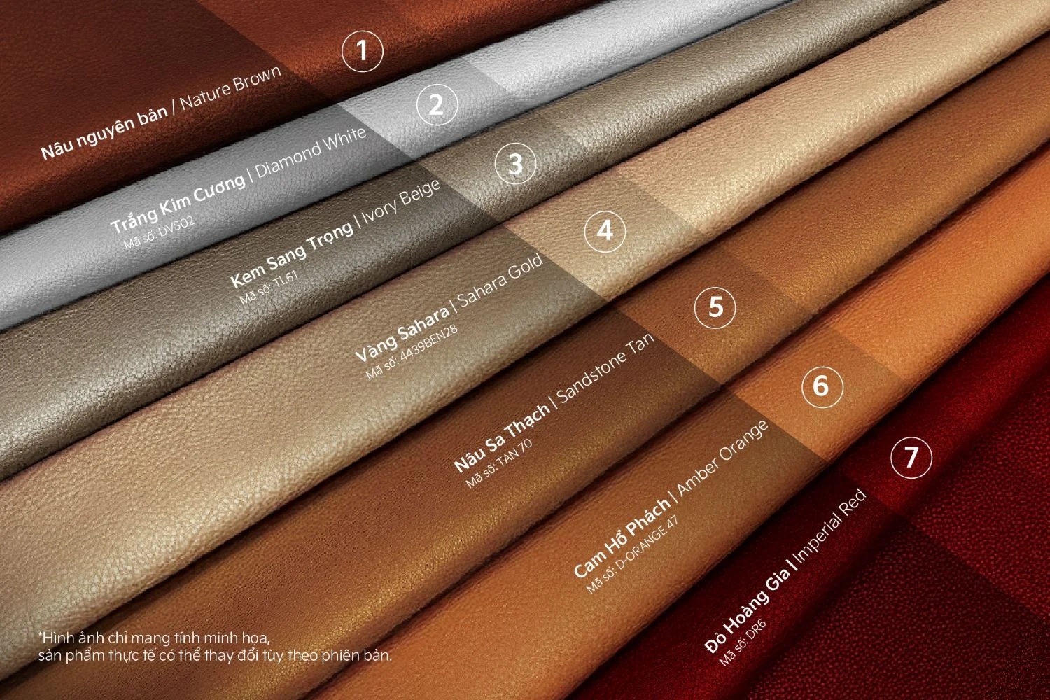 Với tùy chọn 6 gam màu tinh tế, sang trọng và độc quyền dành riêng cho các phiên bản Signature: Đỏ Hoàng gia - Imperial Red, Trắng Kim Cương - Diamond White, Kem Sang trọng - Ivory Beige, Vàng Sahara - Sahara Gold, Nâu Sa thạch - Sandstone Tan, Cam Hổ phách - Amber Orange, Kia New Carnival mang đến một chuẩn mực hoàn toàn mới trong thiết kế nội thất ô tô. Mỗi sắc màu không chỉ được tuyển chọn kỹ lưỡng mà còn thể hiện triết lý nâng tầm trải nghiệm lái bằng những chi tiết tinh xảo, sang trọng và đầy cảm hứng. Không đơn thuần là lựa chọn thẩm mỹ, từng gam màu đại diện cho phong thái và cá tính riêng của chủ nhân – từ sự mạnh mẽ, quyền lực cho đến vẻ tinh tế, thời thượng. Nhờ đó, mỗi chiếc New Carnival trở thành không gian thể hiện phong cách sống và vị thế của người sở hữu.