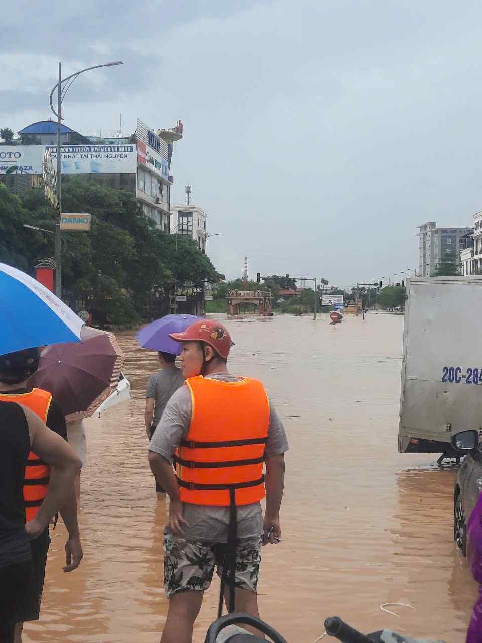 Tại Thái Nguyên, cập nhật đến 17h35 phút ngày 7/10, nước lũ dâng cao gần sát chân cầu Gia Bẩy; nhiều khu dân cư khu vực picenza, aloha nước đã ngập sâu gần 2 mét. Một số khu vực gần sông Cầu, nước đã ngập quá nóc nhà. Bà Nguyễn Thị Hoa, người dân ở khu vực chân dốc Bách Hóa (phường Đồng Bẩm, TP Thái Nguyên) cho hay, nước đã ngập đến khu vực dốc đường đá hay còn gọi là dốc Bách Hóa, điều này chưa từng xảy ra từ mấy chục năm trở lại đây.