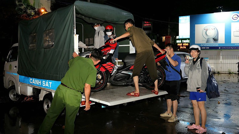 Để hỗ trợ người dân, Công an Cần Thơ cử lực lượng, phương tiện chở phương tiện lên xe chuyên dụng thoát khỏi nơi ngập sâu đến nơi an toàn.