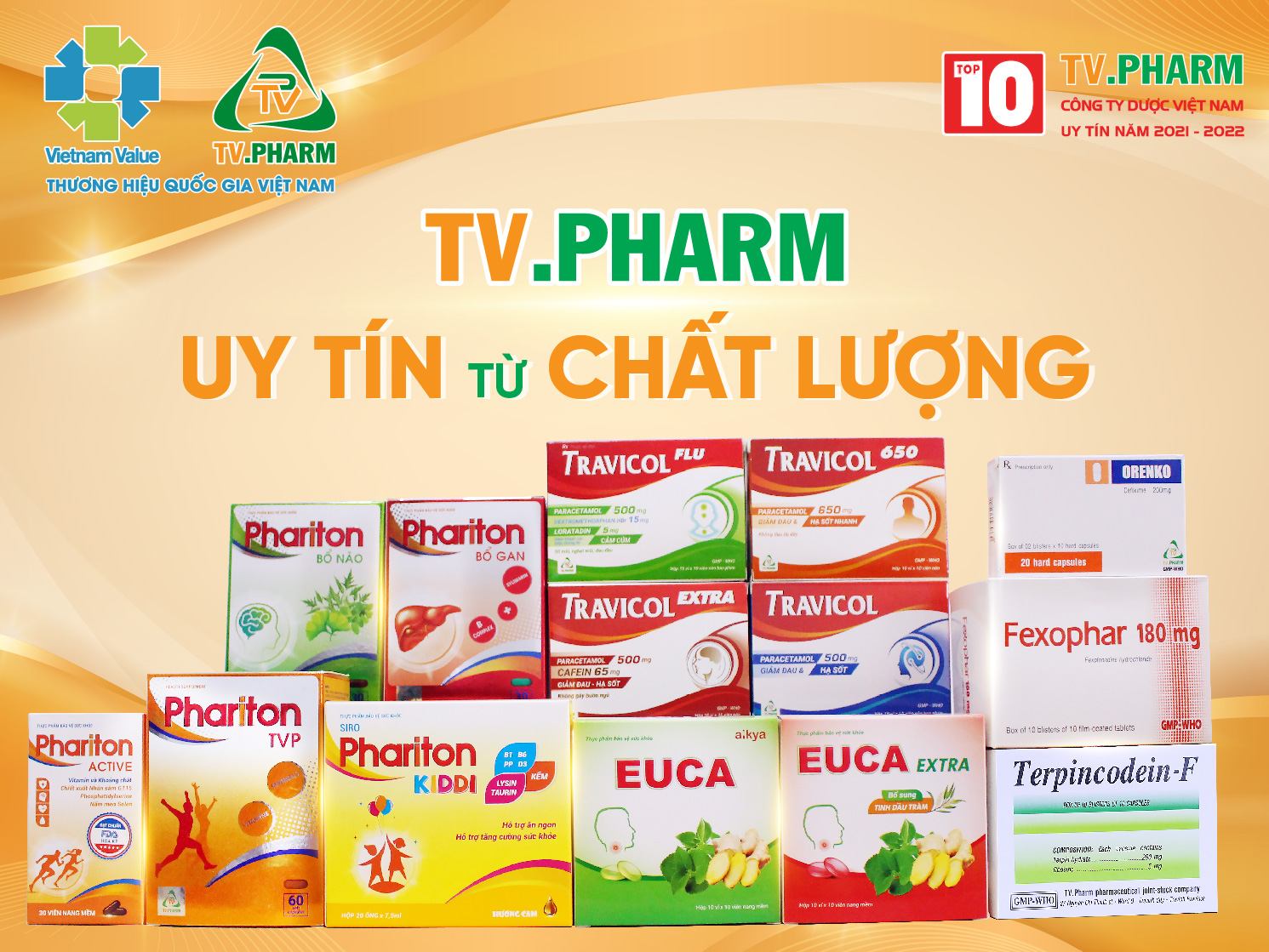 Công ty CP Dược phẩm TV.Pharm - doanh nghiệp sản xuất dược phẩm hàng đầu Việt Nam, đơn vị đầu tiên sản xuất viên nang mềm hiện đại. Với phương châm “Hiện đại tạo niềm tin - chất lượng xây hạnh phúc”, đơn vị không ngừng đầu tư vào công nghệ cao để sản xuất các sản phẩm chất lượng; đạt nhiều giải thưởng và chứng nhận uy tín trong nước và quốc tế.