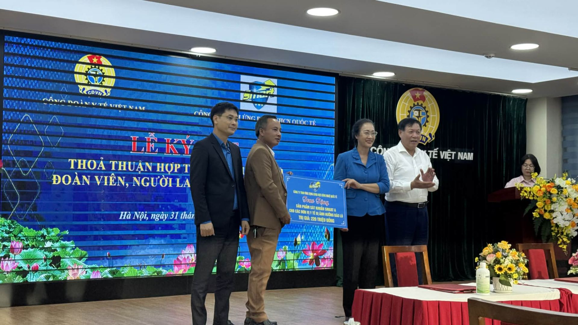 Thoả thuận hợp tác giữa Công đoàn Y tế và Công ty TNHH Ứng dụng khoa học công nghệ quốc tế nhằm phát huy hiệu quả vai trò của tổ chức công đoàn trong việc chăm lo bảo vệ quyền và lợi ích hợp pháp chính đáng cho đoàn viên, người lao động ngành y tế. Hàng nghìn sản phẩm nước muối kháng khuẩn Smart A của Công ty TNHH Ứng dụng khoa học công nghệ quốc tế đã đồng hành cùng Công đoàn Y tế cứu trợ đồng bào bị lũ lụt ở các tỉnh, thành trên cả nước.