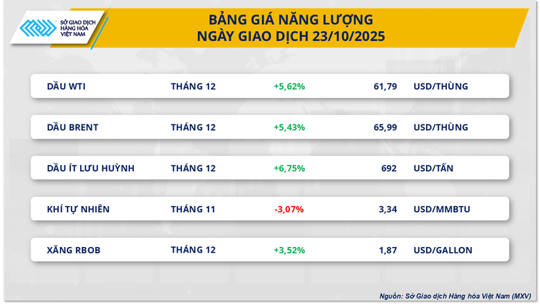 Những lo ngại về gián đoạn nguồn cung đã kéo sắc xanh quay trở lại thị trường hàng hóa nguyên liệu thế giới trong phiên giao dịch ngày 23/10. Giá dầu thô bật tăng mạnh trước rủi ro từ Nga, trong khi giá đồng cũng vọt thêm 2,3% giữa bối cảnh thị trường ngày càng thắt chặt nguồn cung. Chốt phiên, chỉ số MXV-Index tăng 1,87%, lên 2.318 điểm.